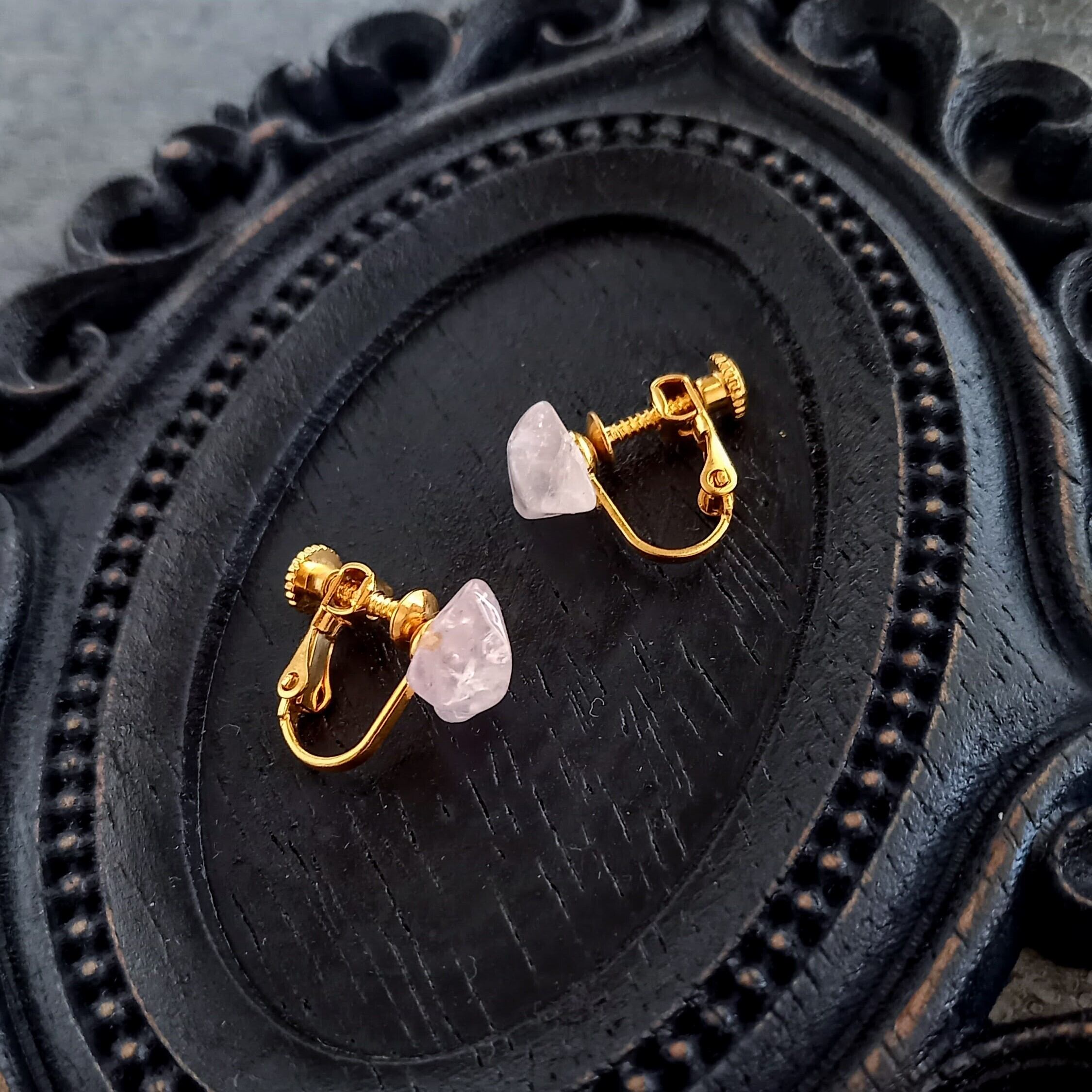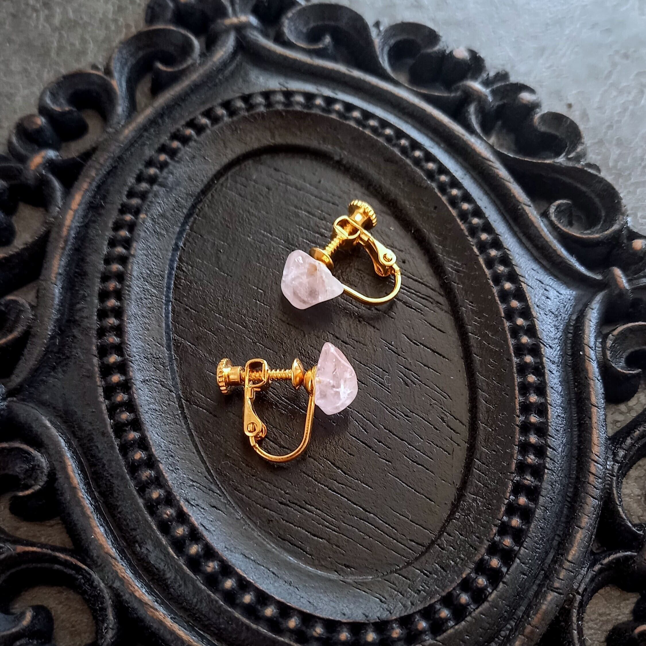 原石を使用したアクセサリーは、ピンクでも甘くなりすぎず、コーディネートのアクセントになってくれます
