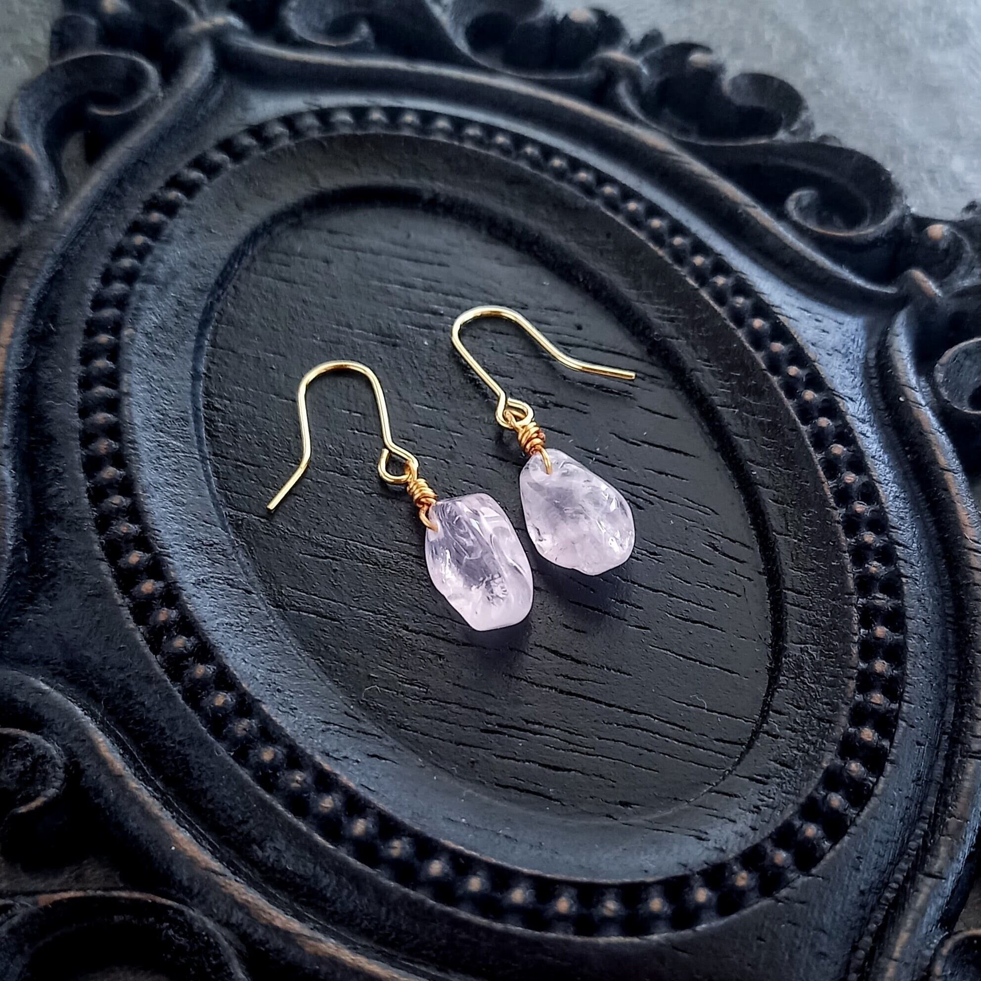 原石を使用したアクセサリーは、ピンクでも甘くなりすぎず、コーディネートのアクセントになってくれます