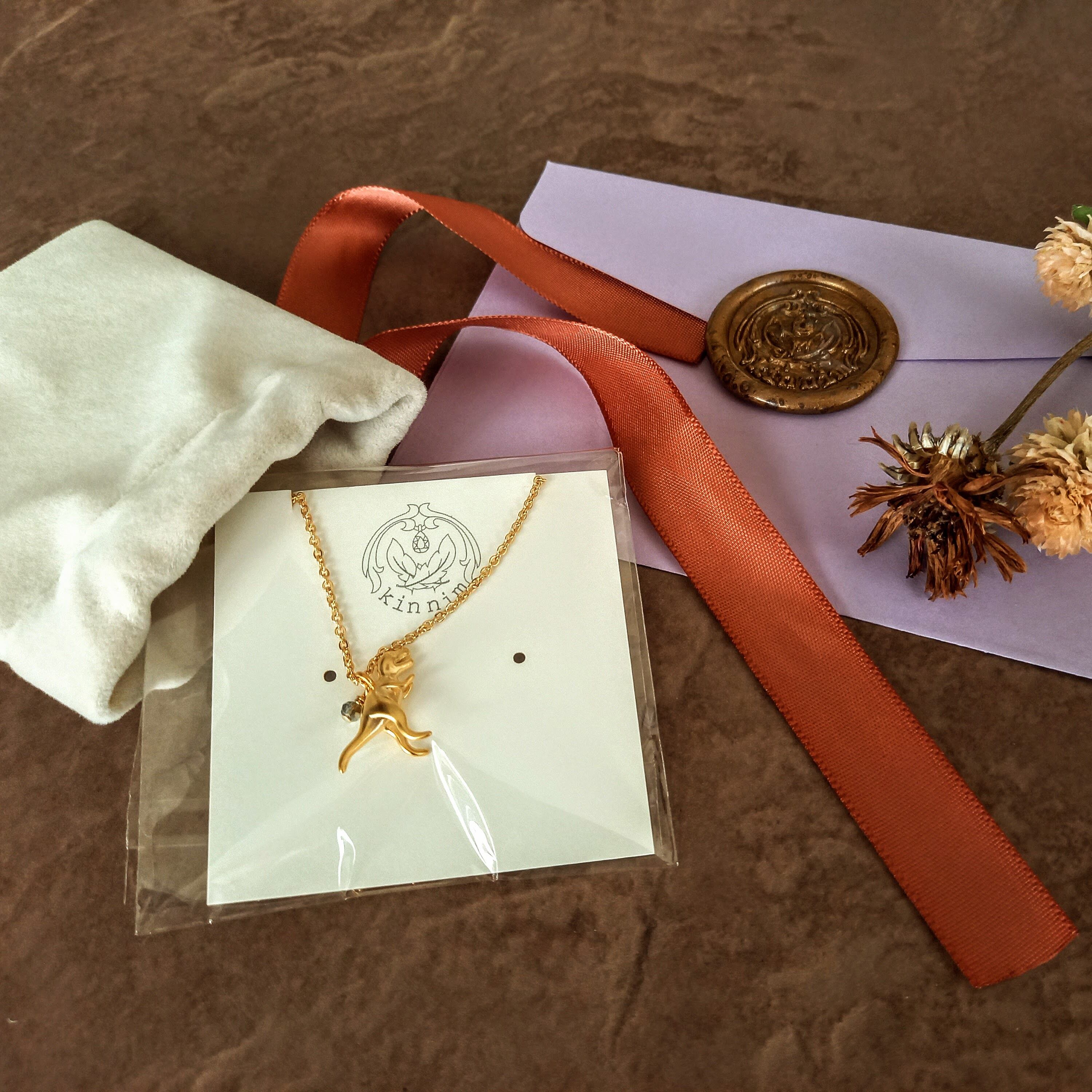 台紙にセッティングしたアクセサリーをOPP袋で包み、