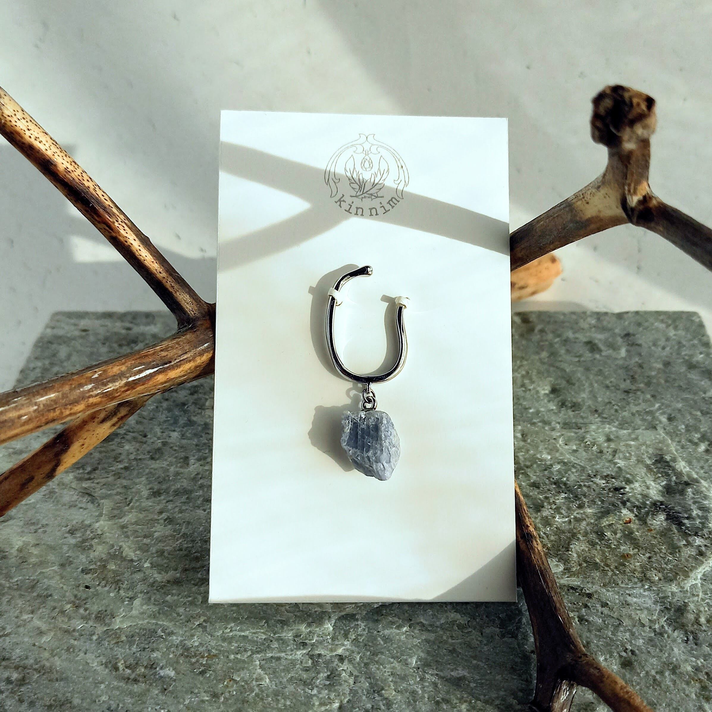 深い空を思わせる、ブルーのサファイヤ原石を使用したイヤーカフ。