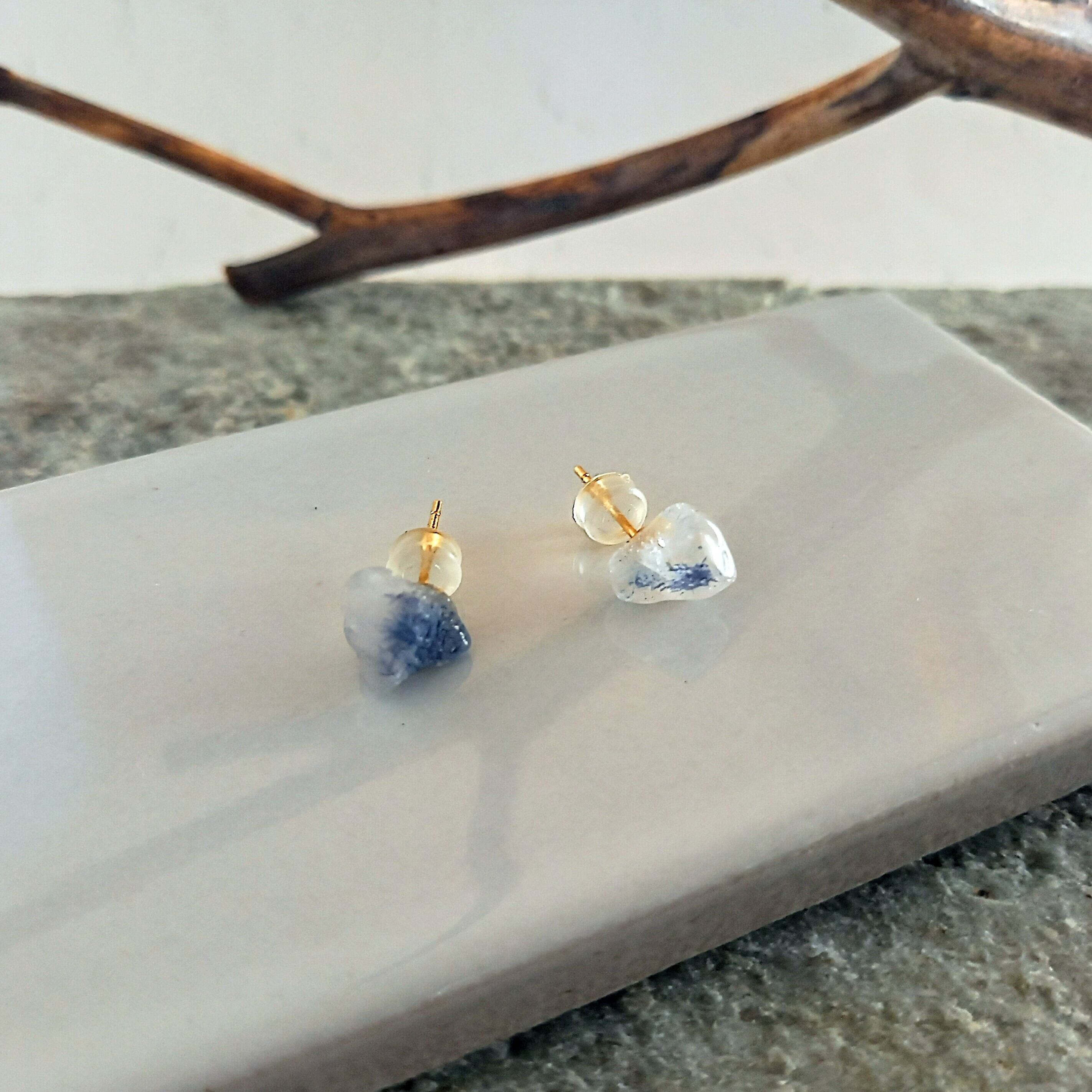 【Jardin bleu】デュモルチェライトインクォーツ ピアス スタッド(両耳)